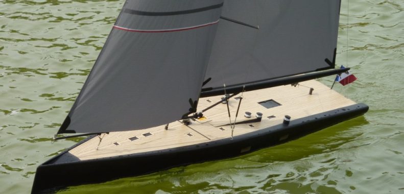 This project aims to create a 1:25 Wally 100 Tango model: LOA=1219mm, beam=288mm After 13 months, the result: Design Shaping Hull Hull border Rudder and fin Servo plate Mast and boom Pulley and belt Deck fitting Bulb Hull paint Deck planking Sails Launching DESIGN Covid crisis and minimal ressources: a 28″ screen, openSCAD, some paper,